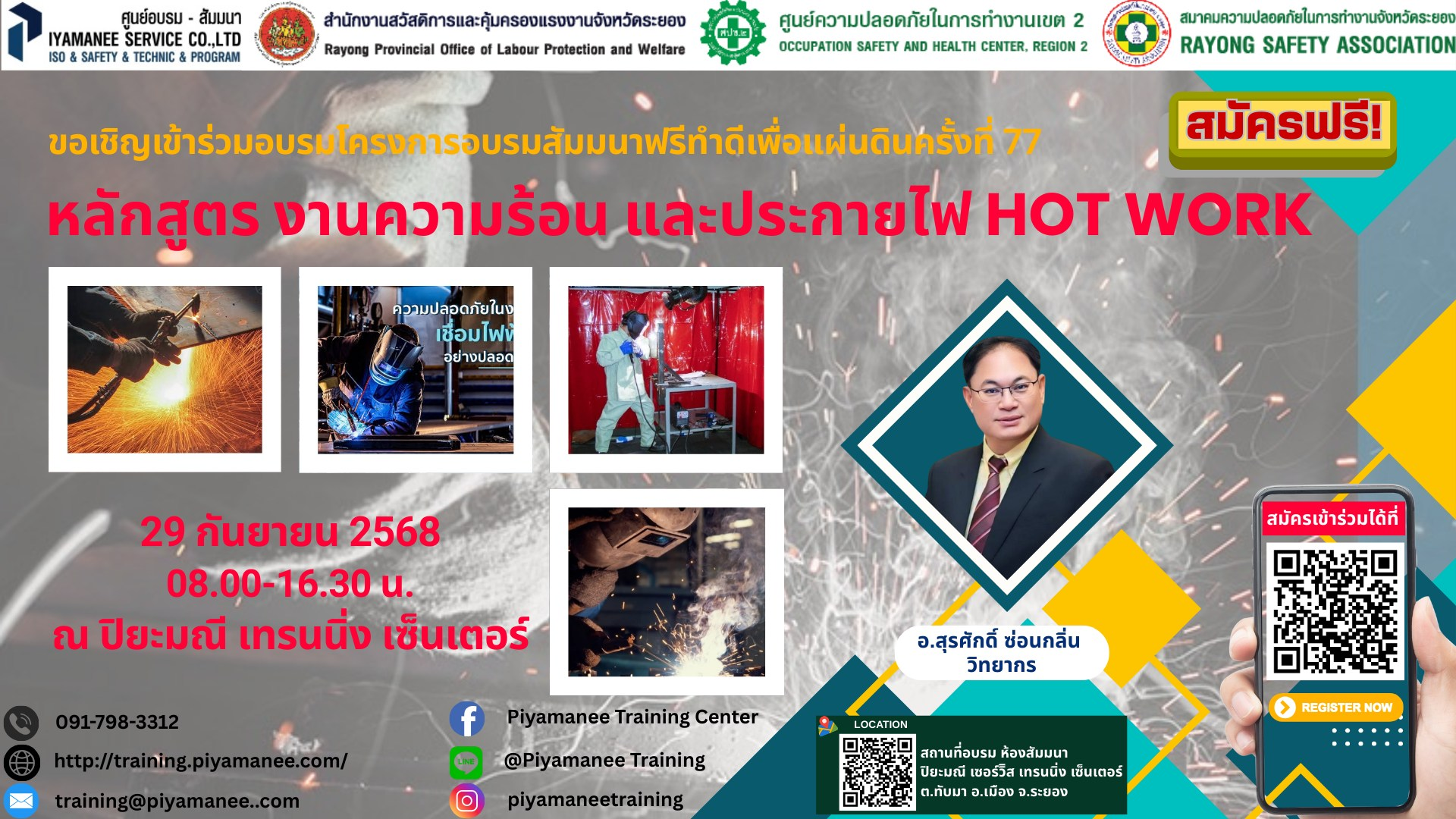 หลักสูตร “โครงการอบรมฟรี ทำดีเพื่อแผ่นดิน ครั้งที่ 77 หัวข้อ งานความร้อน และประกายไฟ HOTWORK